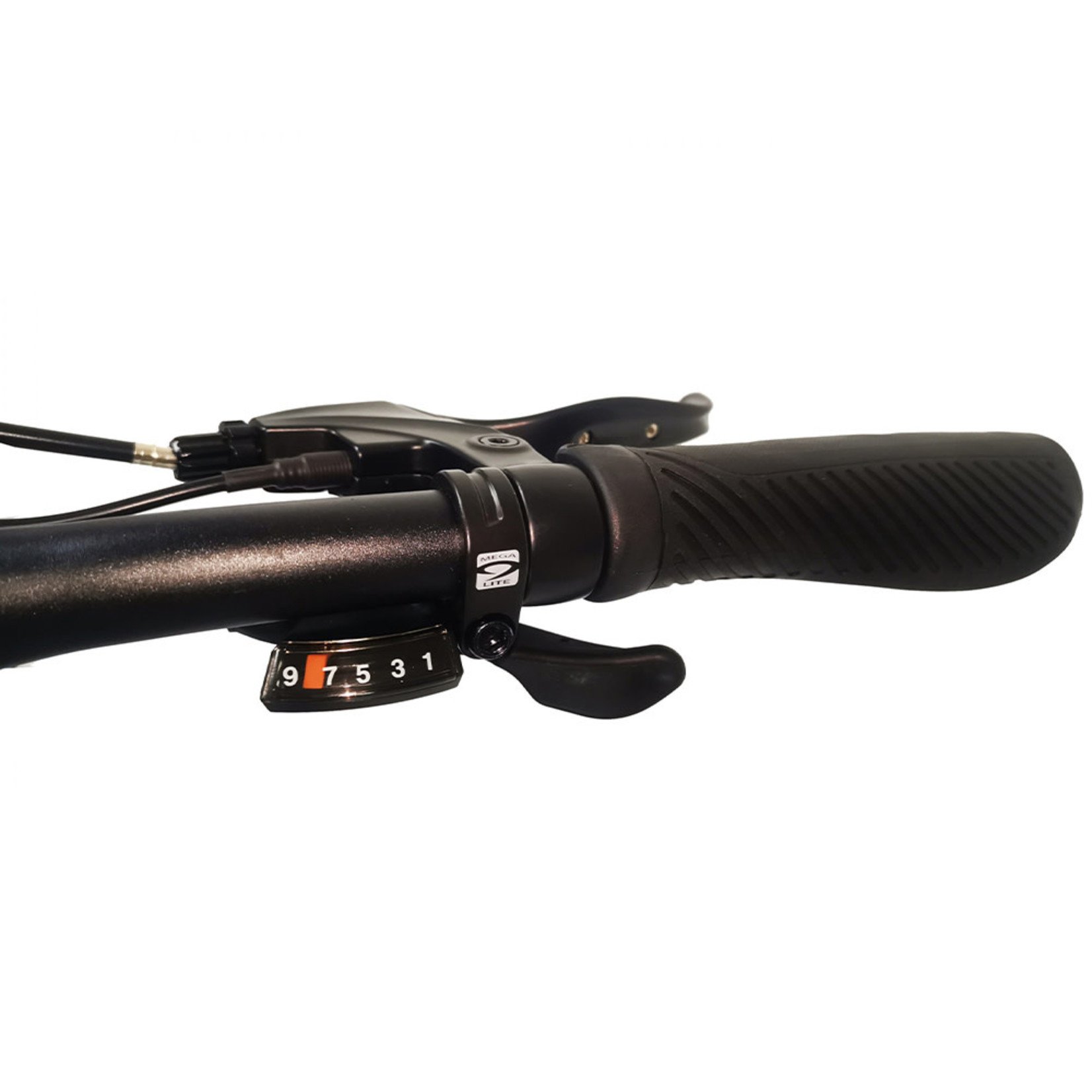 The electric system is controlled through a handlebar-mounted LDC Display that provides all information the rider needs to know, such as battery level, speedometer, odometer, five levels of pedal assist, and so on.