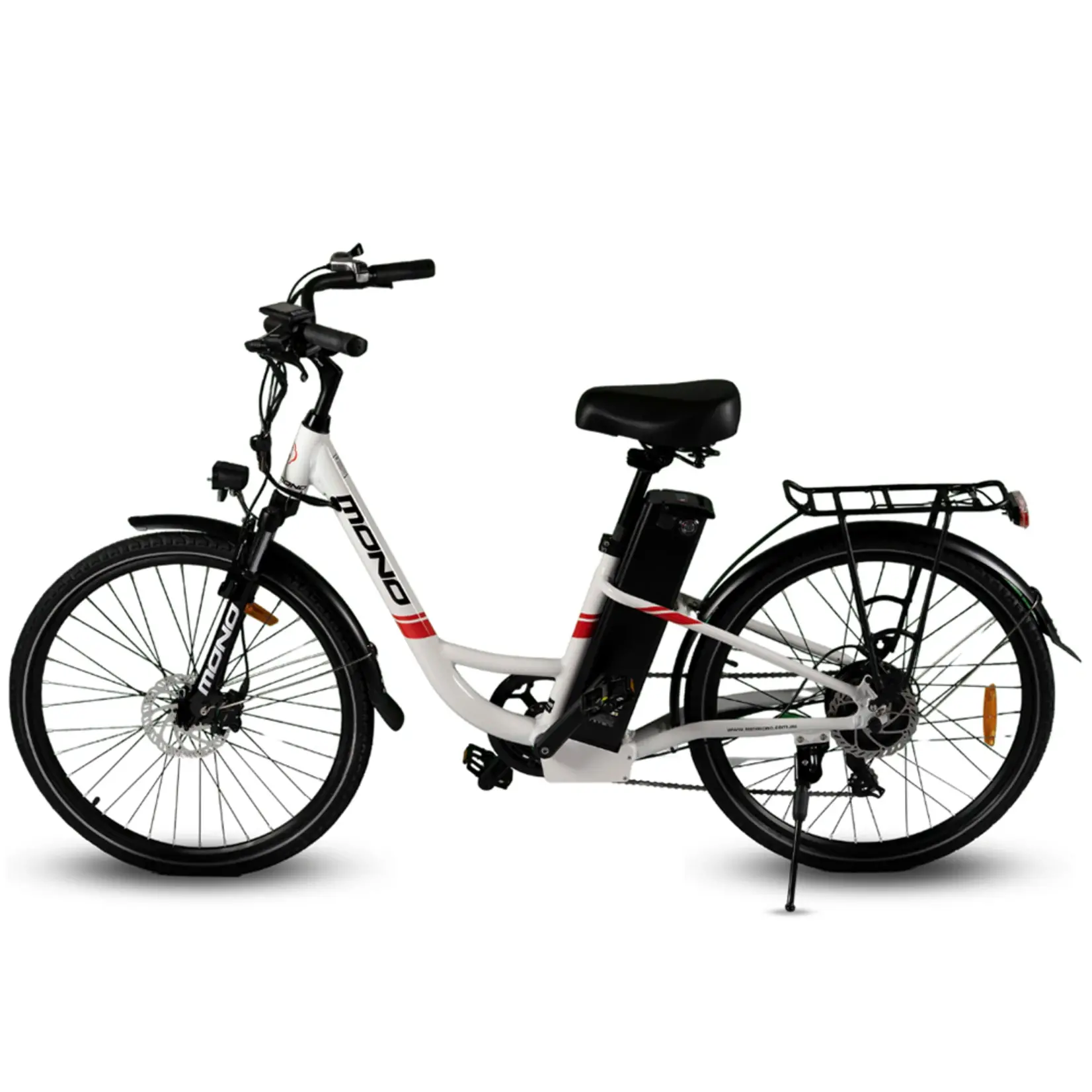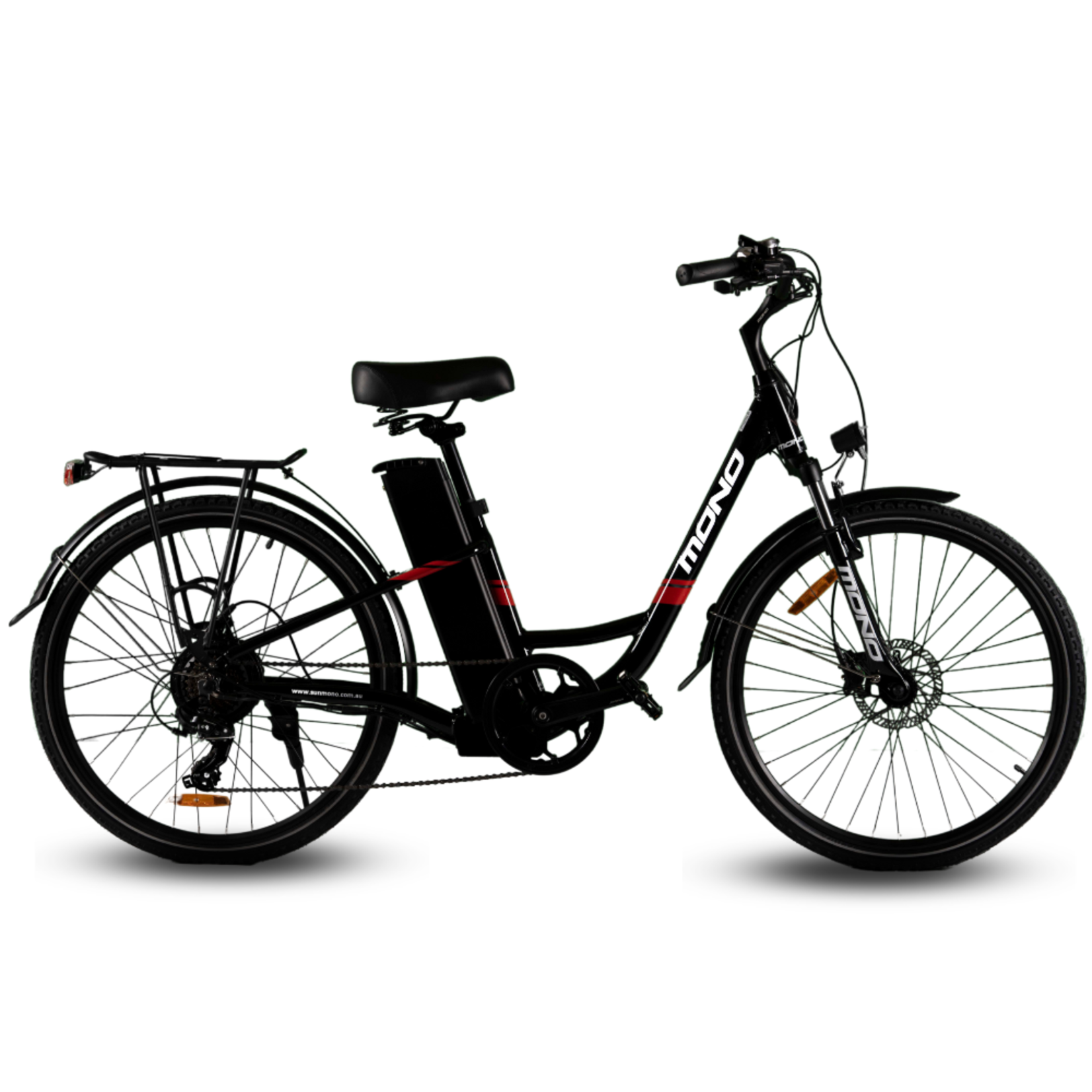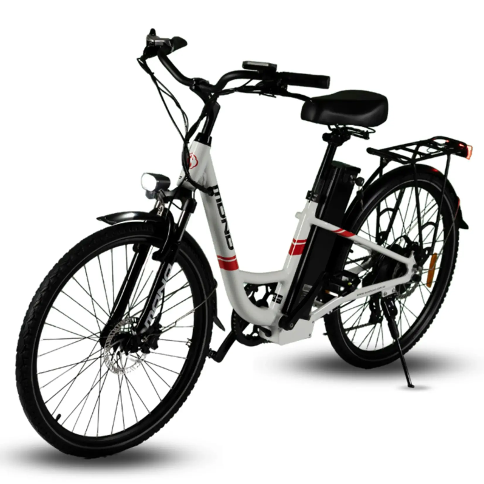 This electric urban bike provides integrated cargo carry capacity and a powerful motor at a very cost-effective price. The bike’s core is the lightweight step-through frame making it suitable for both male and female riders. At the same time, the adjustable leather seat, 26″ wheels and 40mm front suspension make it comfortable to ride.
