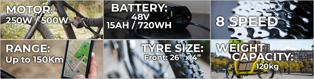 • Removable and lockable 48V 720Wh extra large battery capacity