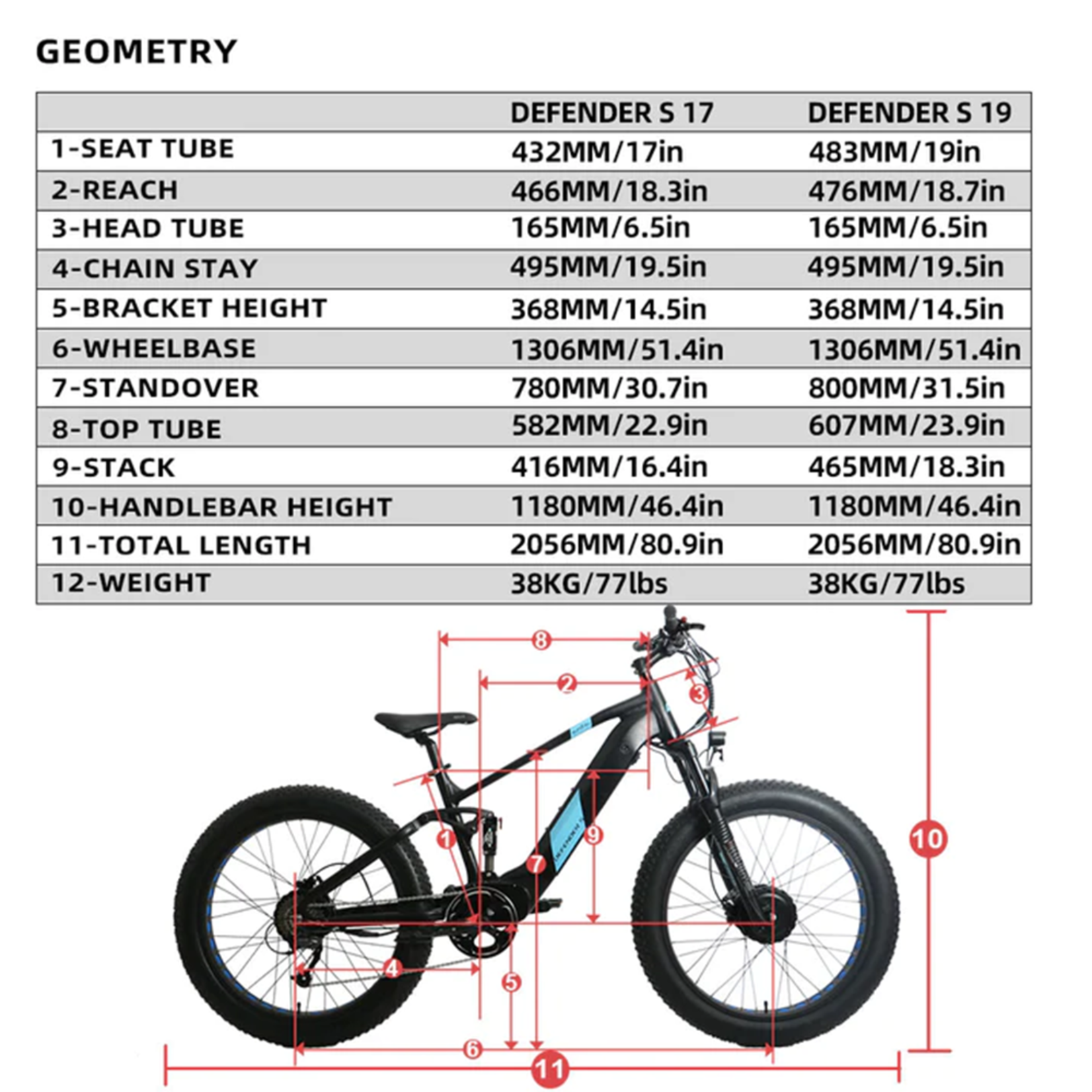 The 26″ Fat Tire Model DEFENDER S 1500W E-Bike Specifications