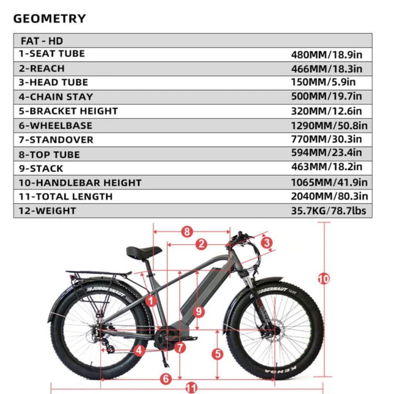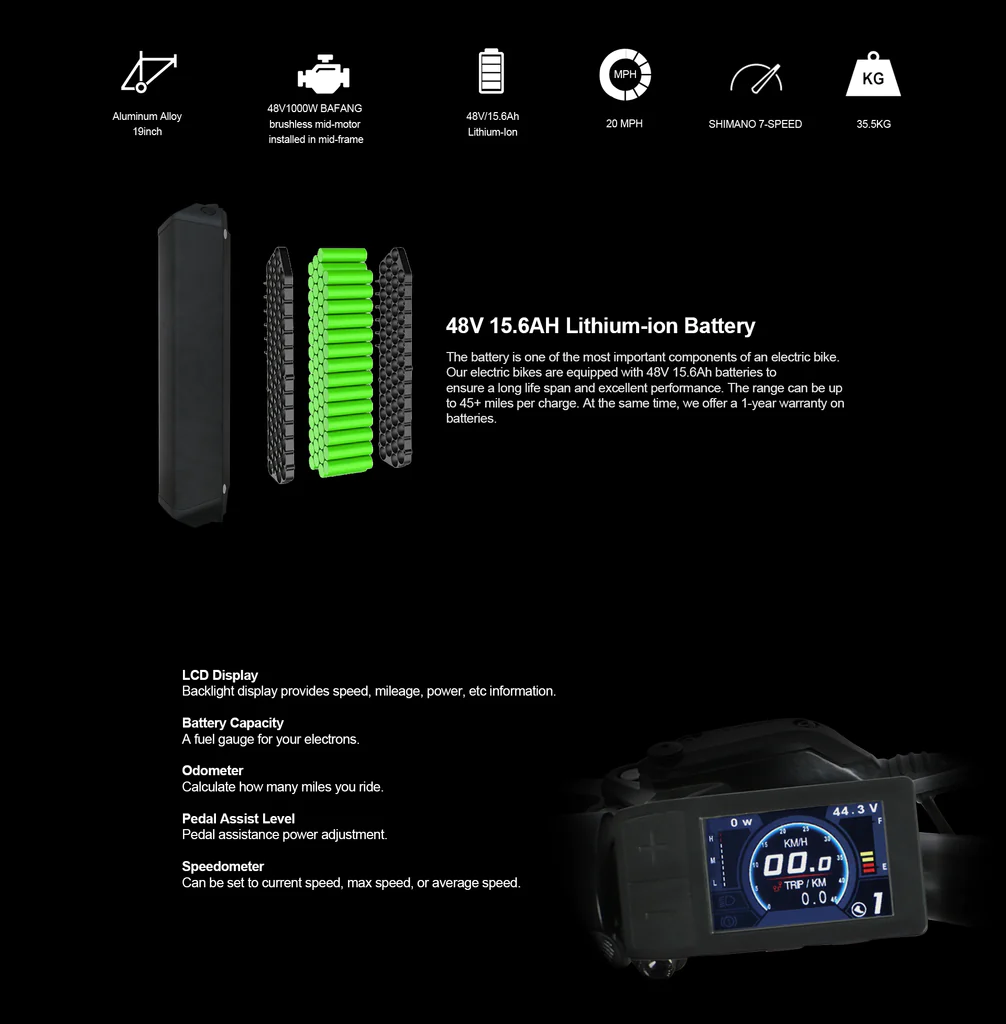 The 26″ Fat Tire Model FAT-HD 1000W E-Bike Specifications