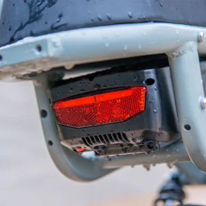 The taillight boasts a sleek design, seamlessly integrating with the battery box. This fusion not only simplifies the structure but also enhances the aesthetic appeal. The taillights are designed with an automatic feature. When not manually activated, they illuminate upon braking, enhancing safety and visability.