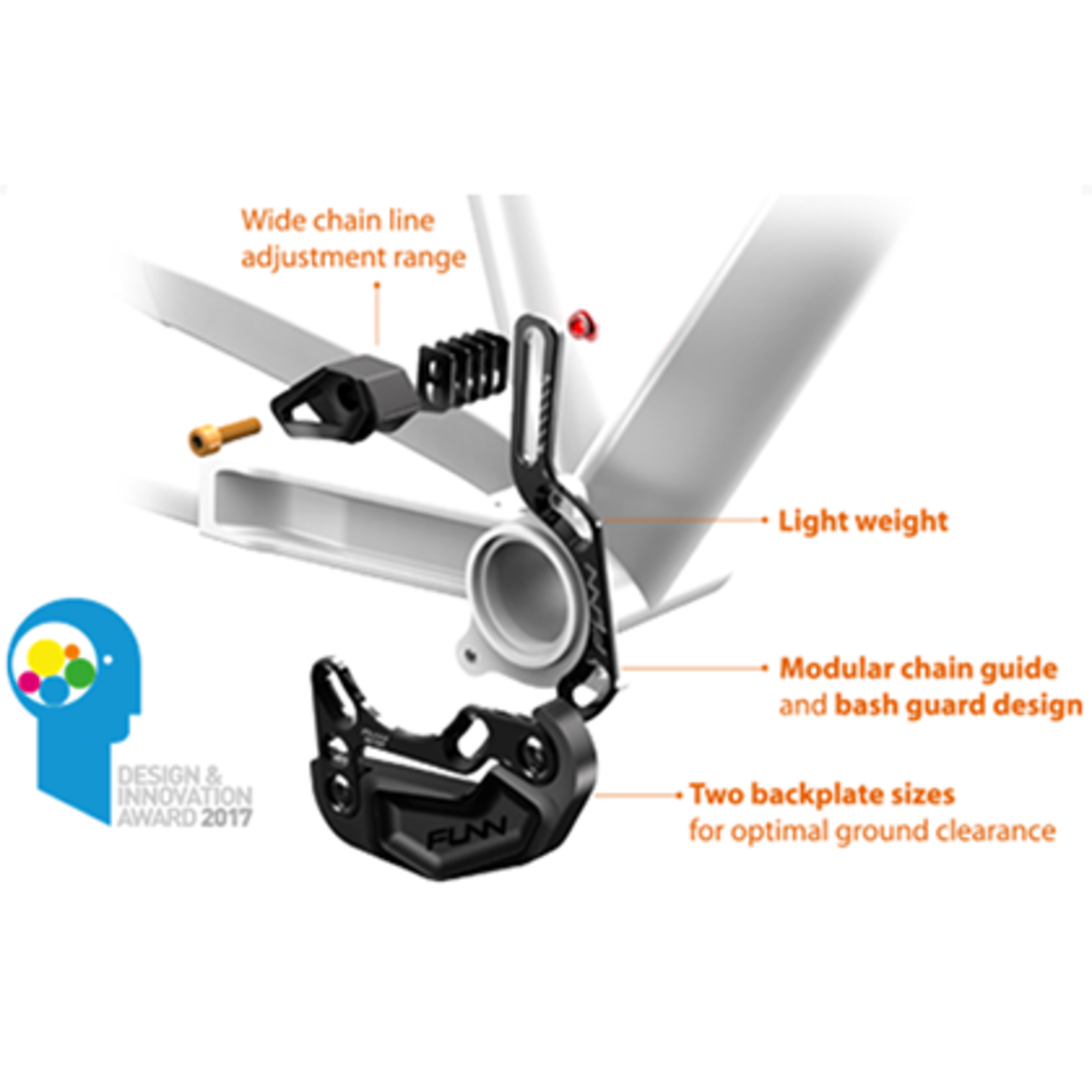 FUNN ZIPPA BASH GUARD features CNC machined 7075 heat treated aluminium back plate, and replaceable thermoplastic polymer bumper that is both strong and light. It will keep your chain ring and chain set safely protected as you zip through rock gardens and tree trunks.
