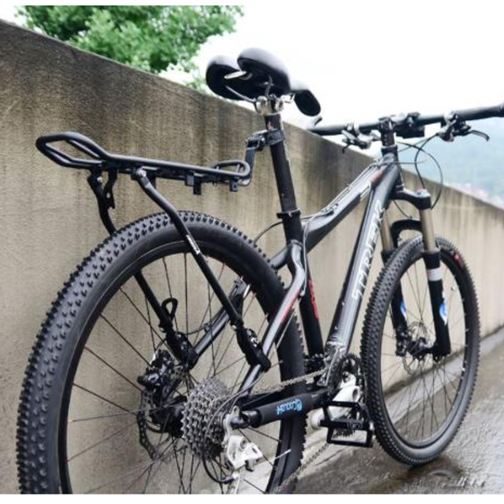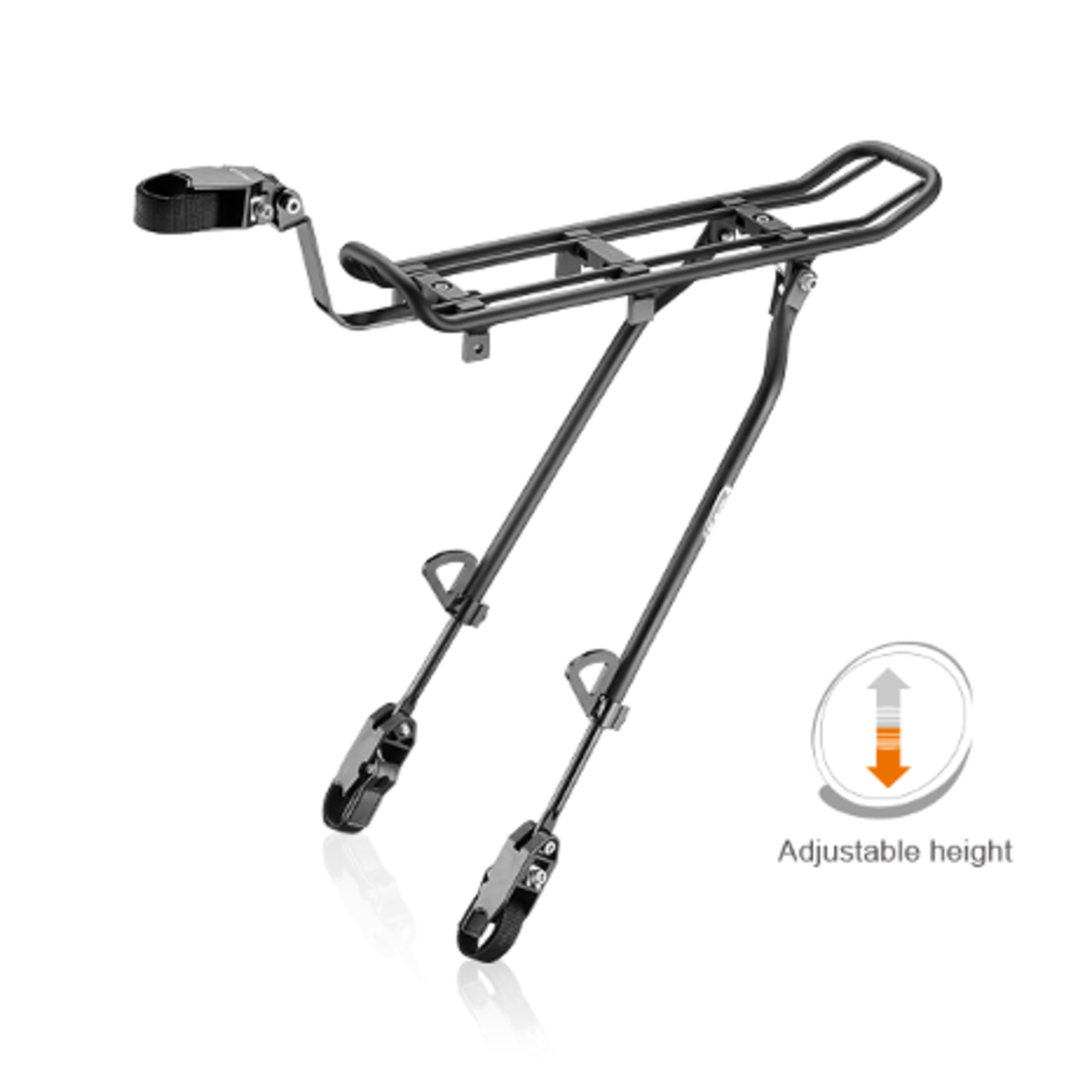 Clamps and straps equipped with non-slip, non-scratch pads. Carries up to 7 kg (15 lb), Reflector or taillight attachable.