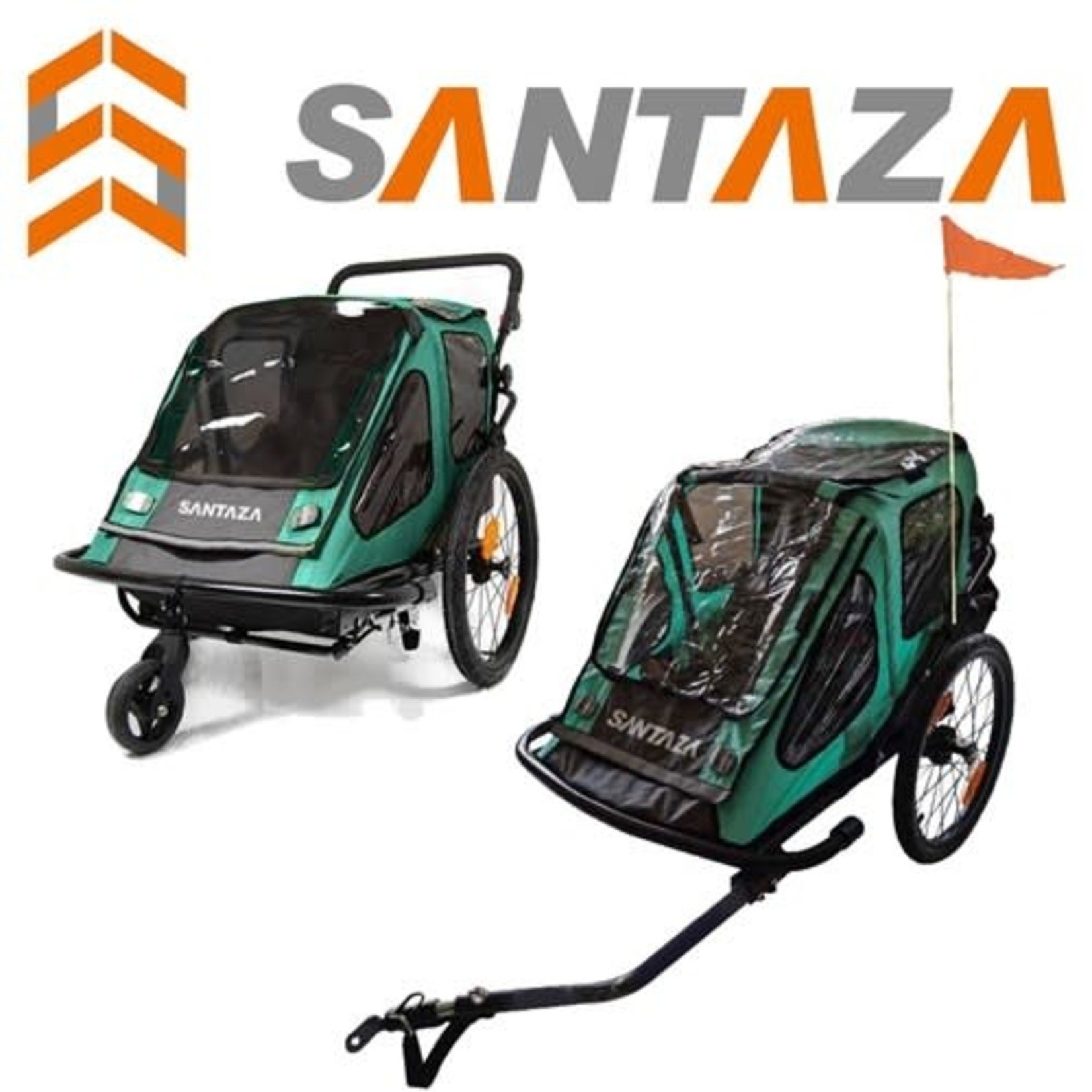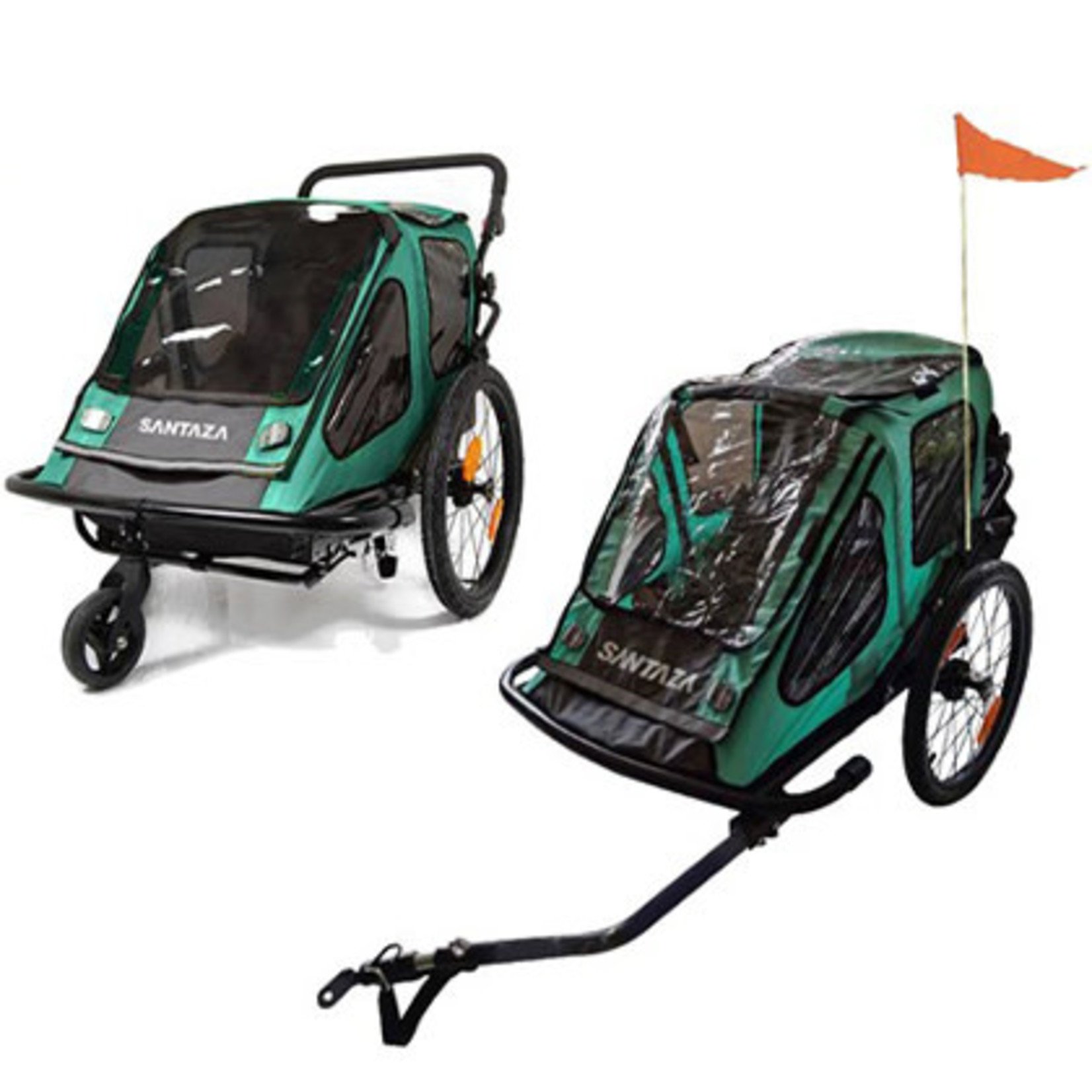 For 1 or 2 children. Capacity: 40kg. 20″ Rear wheels. 6″ Front swivel wheel. Reflectors included. Safety flag included.
