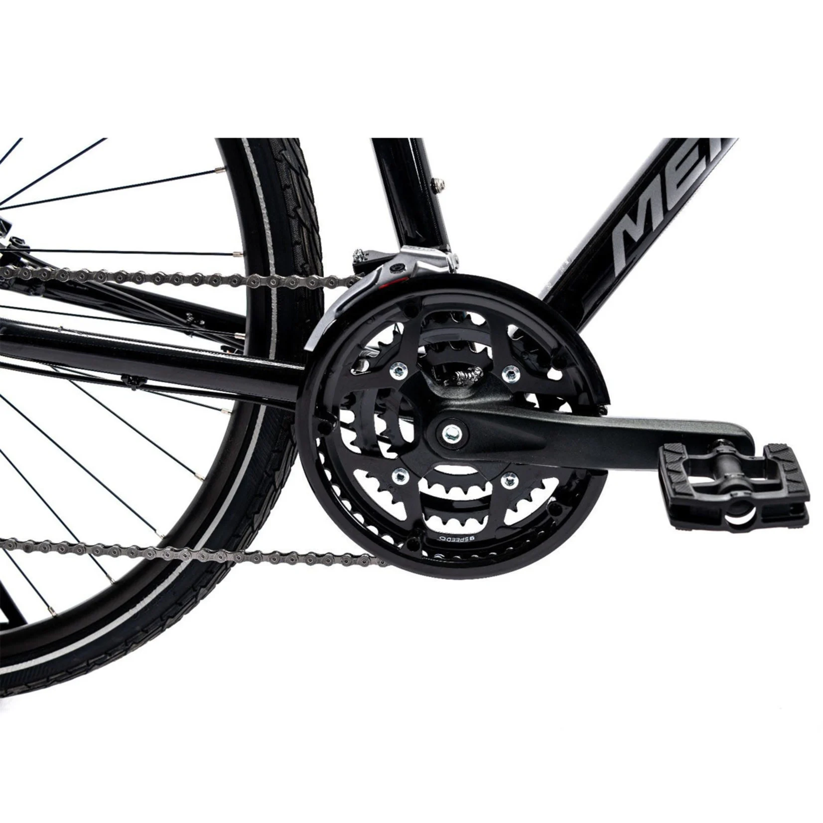 The Merida Crossway 100 Hybrid Bike brings relaxed versatility for casual riding and commuting on urban streets and bike paths. Functionality on the Crossway starts with the light and easy to control alloy frame with comfort geometry, matched with a Suntour NEX fork and remote lockout for a smoother ride. The 3×9 speed Shimano drivetrain has an efficient range of gears to help you tackle any climb or descent. The brakes on the 100 are designed to handle any conditions, equipped with Tektro M275 2 Piston Hydraulic Disc Brakes for responsive braking control so that you can ride with confidence.