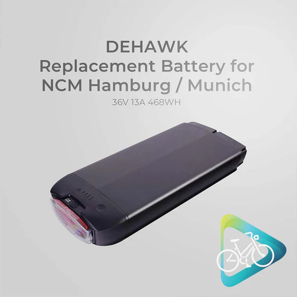 Power your daily rides with confidence using the DEHAWK 36V-R battery, built specifically for the NCM Hamburg and NCM Munich electric bikes.