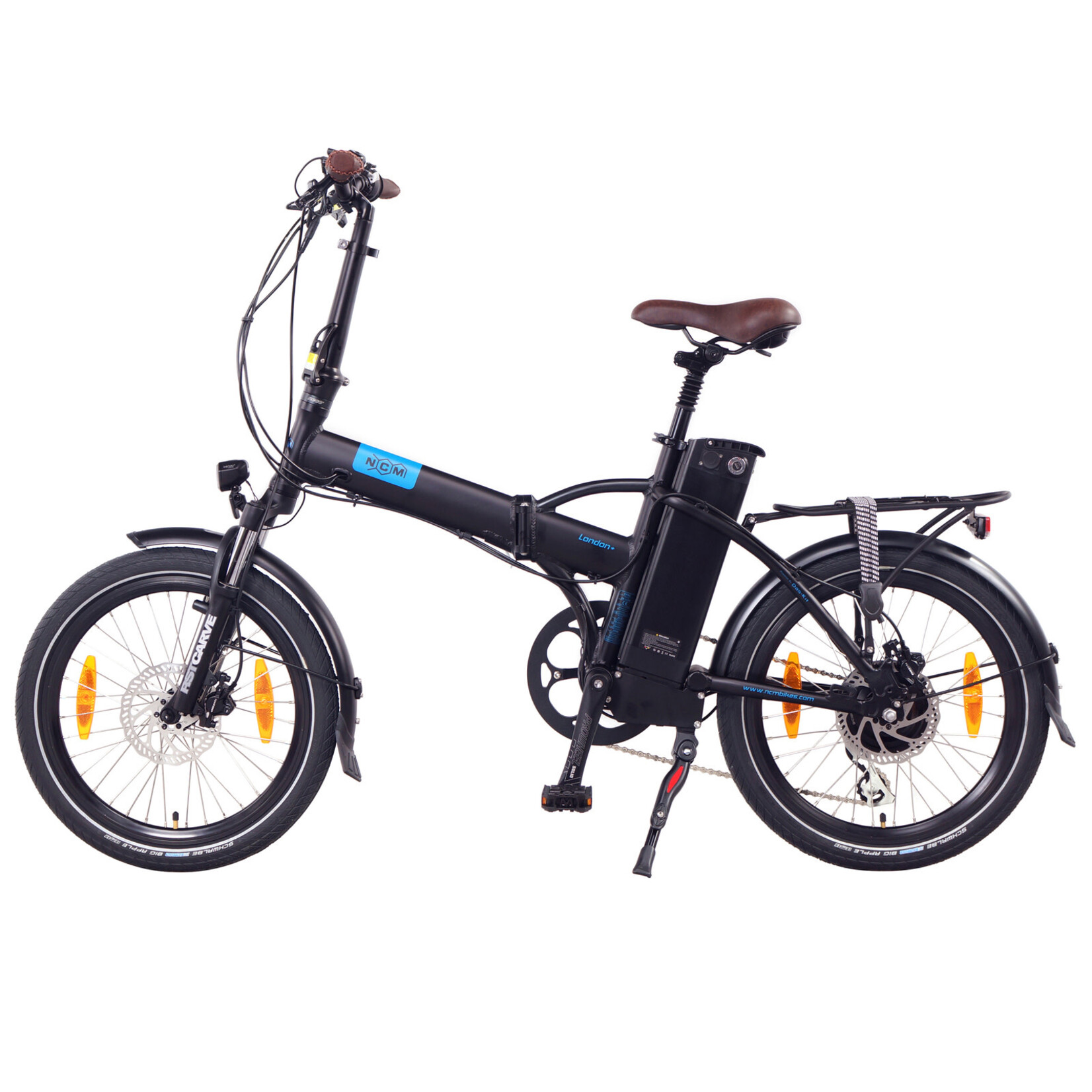 The NCM London+ is a highly versatile folding E-bike as it can be compacted without tools for even the smallest storage spaces with its folding frame, stem, pedals and saddle: take it with you when you go on vacation; ride it to your office and park it right next to your chair; or store it at home beside the shoe rack with no inconvenience. The step-through frame makes repeated mounting and dismounting effortless for when you’re shopping or running errands, and a unique feature of the electronics system allows the motor to run at 4mph without the need for pedalling—perfect for navigating through heavy foot traffic or riding casually alongside someone who is walking.