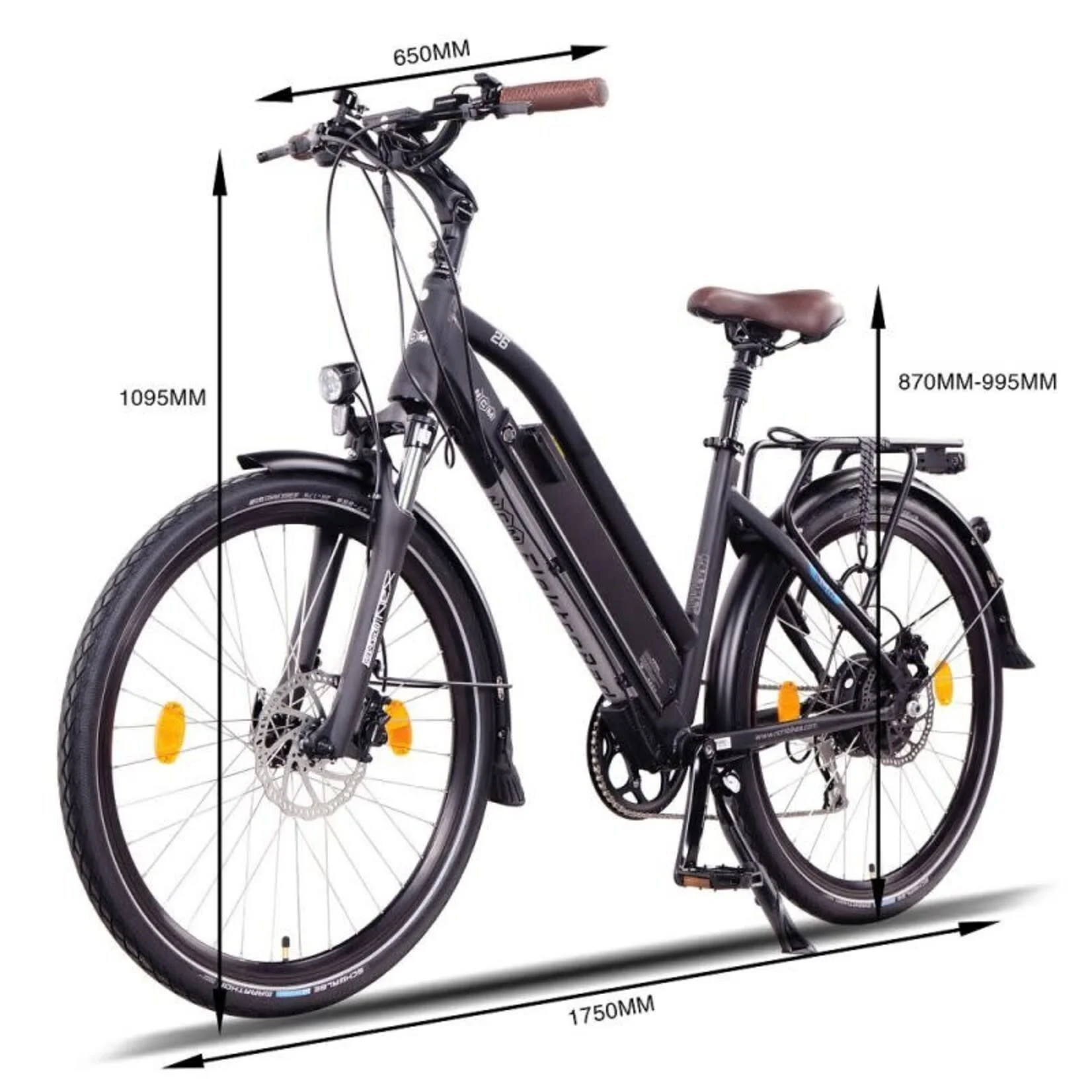 - Tyre: Schwalbe Marathon 26″*1.75 / 28″*1.5 700C black