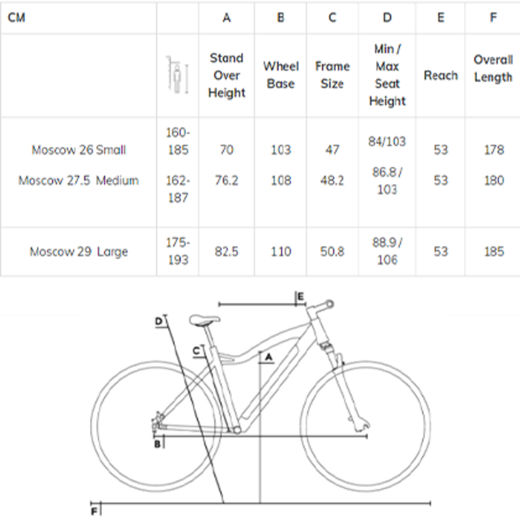 - Please note: These values are minimum and maximum values for the bike to be properly rideable. The bike will be most comfortable near the middle of the range indicated. The minimum value should be treated as the absolute minimum, as anything lower may result in the rider not being able to reach the pedal at the bottom of the crank cycle. Using inseam length is much more accurate and appropriate for bike sizing than height. The frame size of a bike is generally governed by the length of the seat tube.