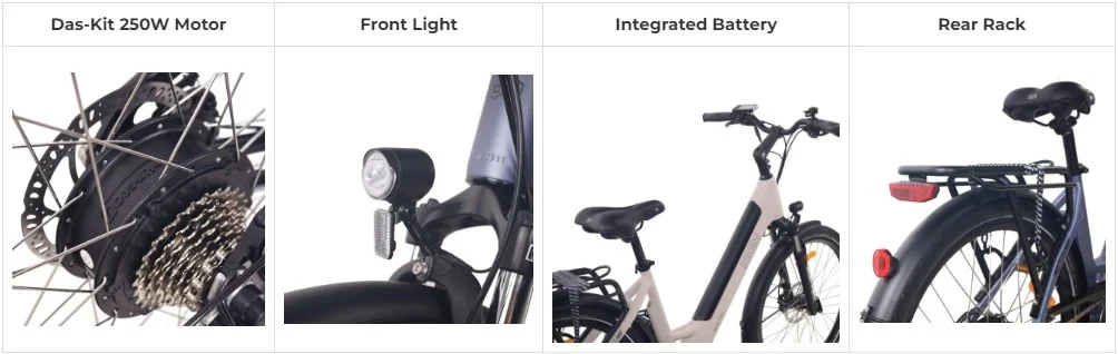 - Motor: Das-Kit R2S motor, 36V 250W, max speed 25 km/h - Battery: DEHAWK B1u-3619P, 684Wh, 36V 19Ah - Display: Das-Kit C7, LCD Display - Charger: SANS 36V 3A - Frame: Alu. 6061, 380mm