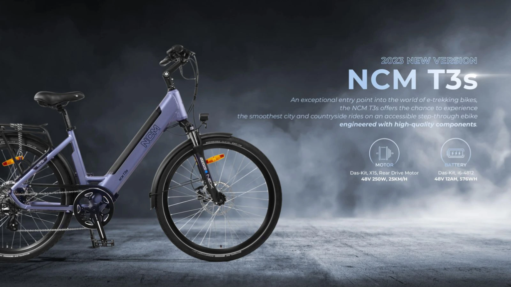 NCM T3S Step Trekking E-Bike, City Electric Bike, 250W, 48V 12Ah 576Wh Battery – 26″