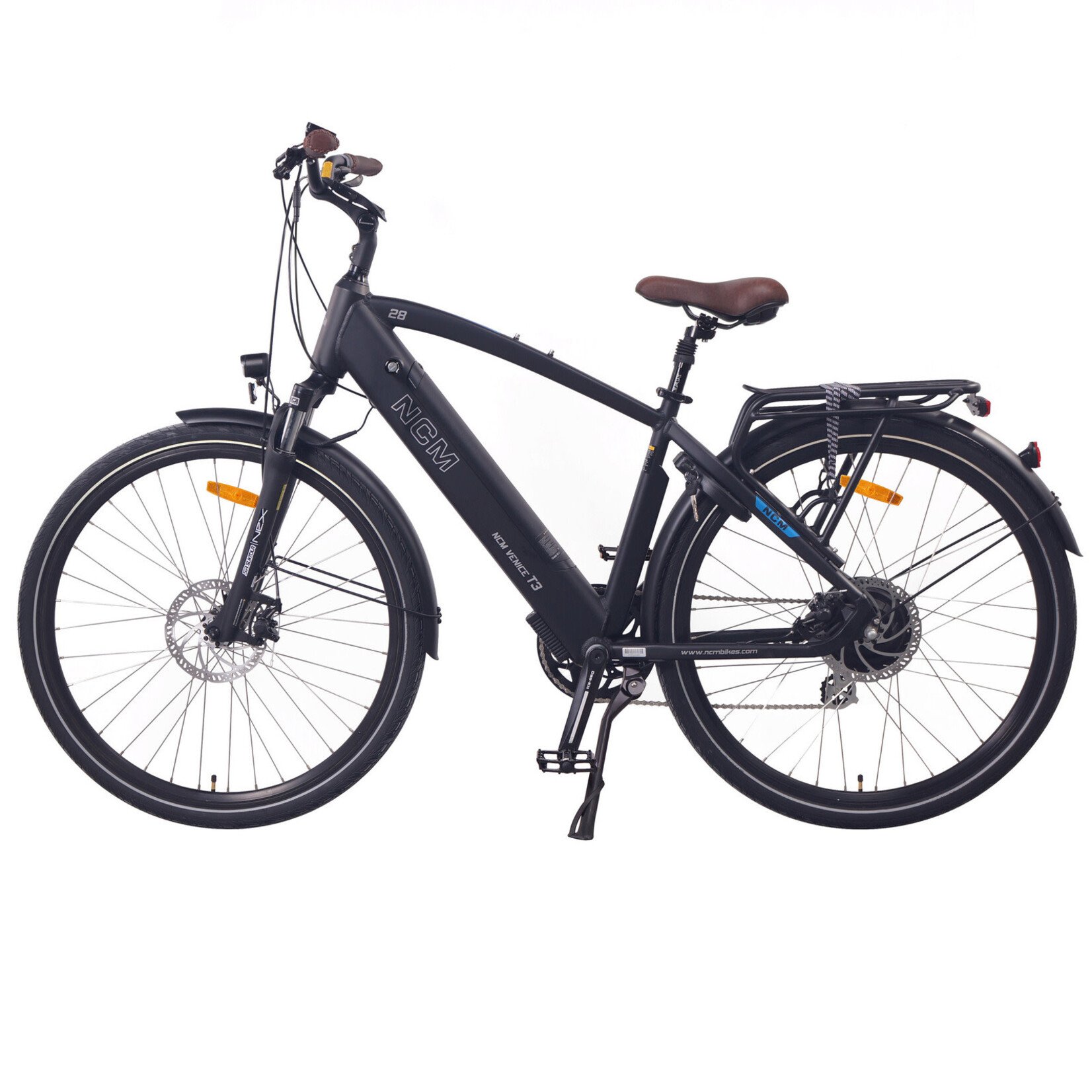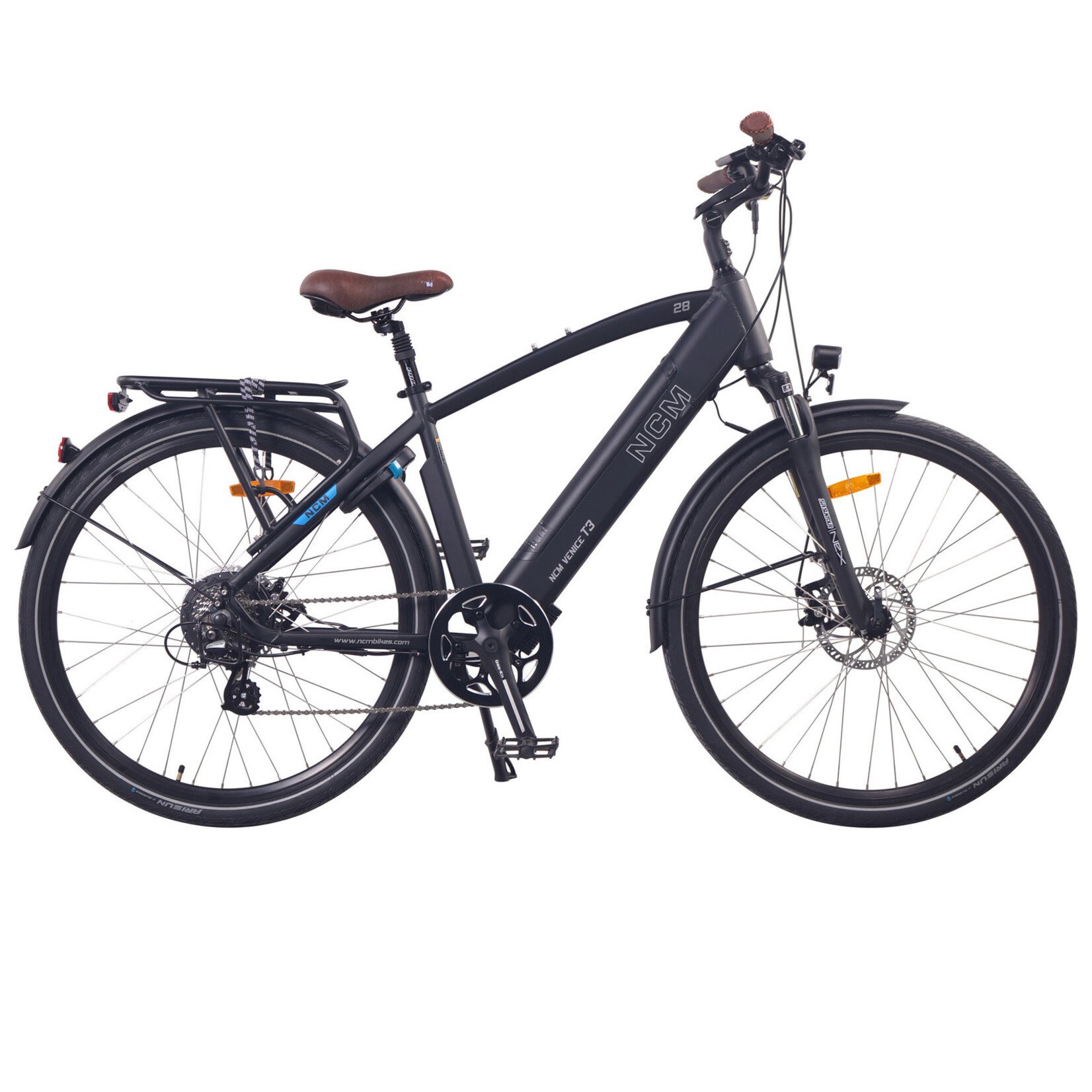 Compared to old Venice, T3 is built with a reinforced integrated battery. Inspired by the Romance on The great Italian City, The NCM T3 is both stylish and very practical. Perfect for running around the city, with a useful rack to the rear for extra storage. This E-bike is designed with a tough aluminium frame, and an adjustable handlebar/stem setup, with a sprung seat for improved comfort.