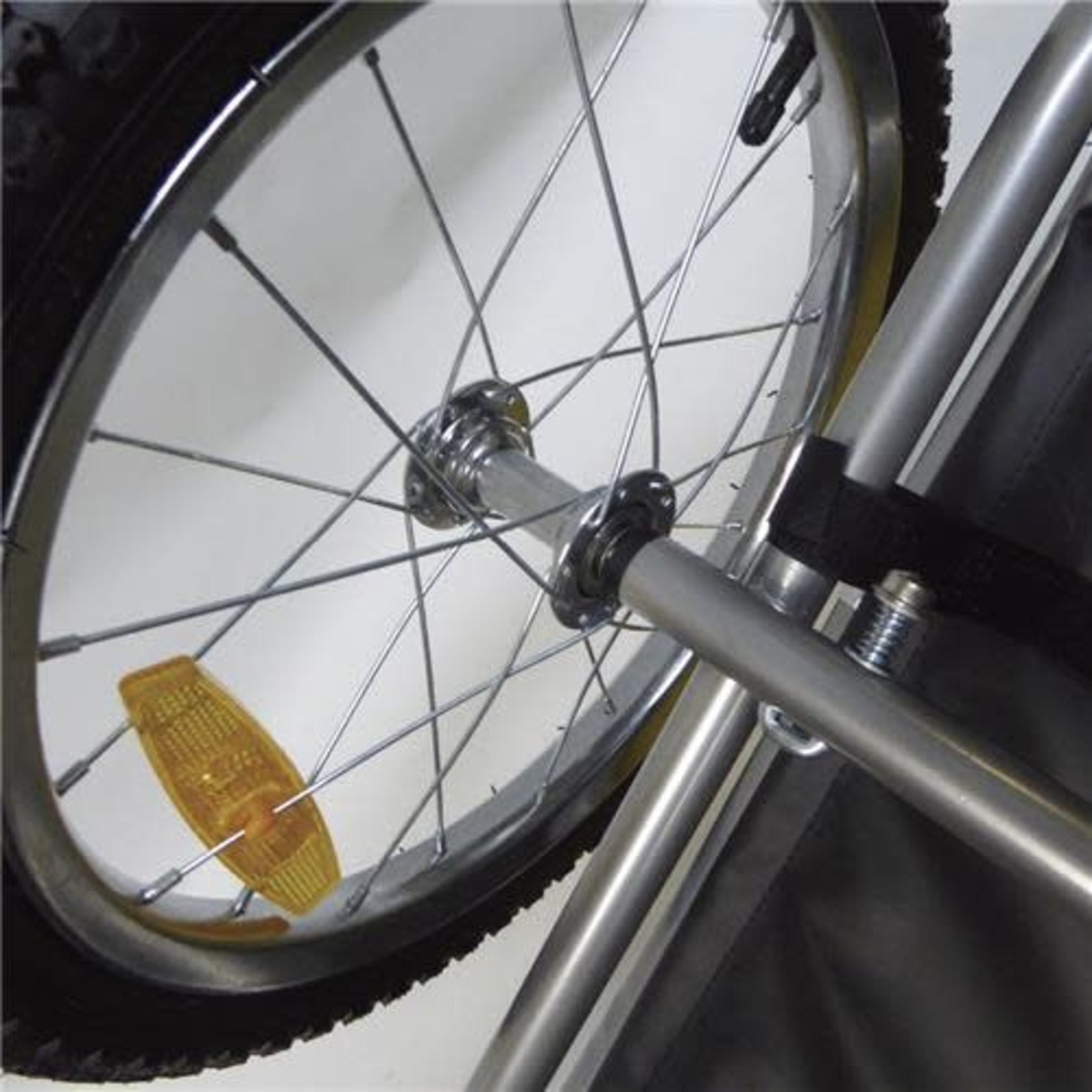 16″ quick release steel wheels with reflectors.