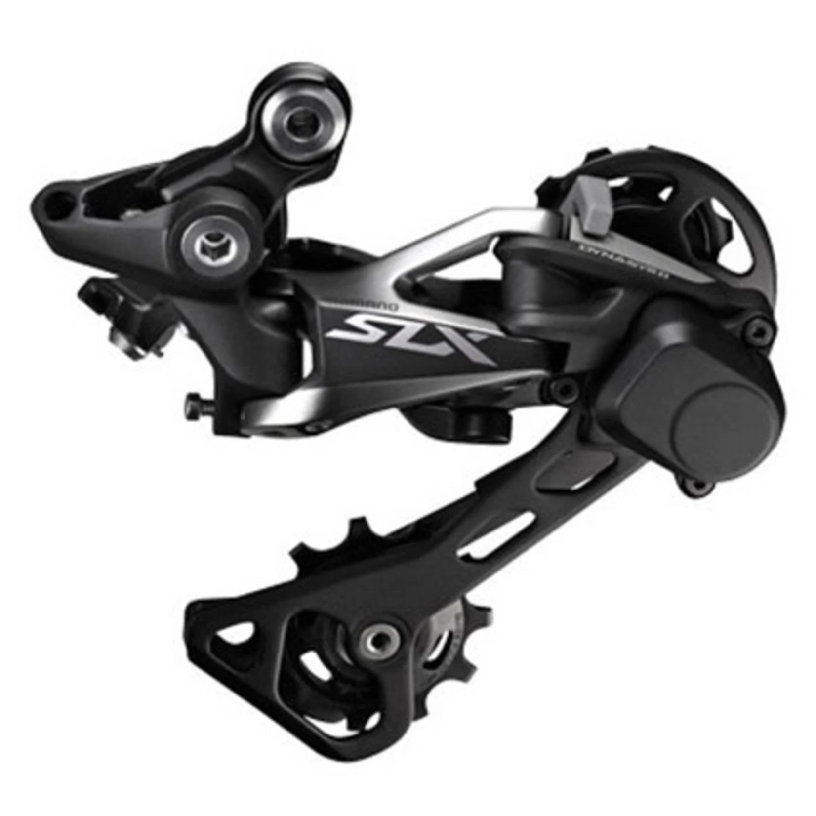 The SLX derailleur offers a very similar level of performance to the XT model but uses a steel cage rather than aluminium. This keeps the cost down a bit and adds a measly 52g in weight.