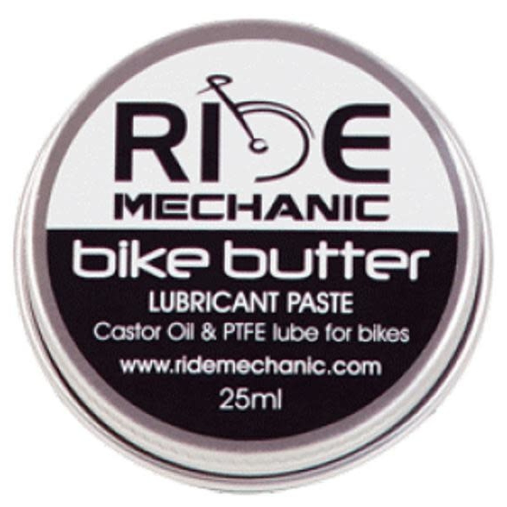 BIKE BUTTER is a high performance lubricating and protective paste which contains castor oil and high levels of micronised PTFE. It is highly acclaimed for use on threads to reduce corrosion and is perfect to use on gear and brake cables and on shifter and brake lever pivot points. Due to its high “paste” viscosity it can be used where reliable operation is required for extended periods. It repels moisture and stays in place working where it needs to work and keeping dirt out.