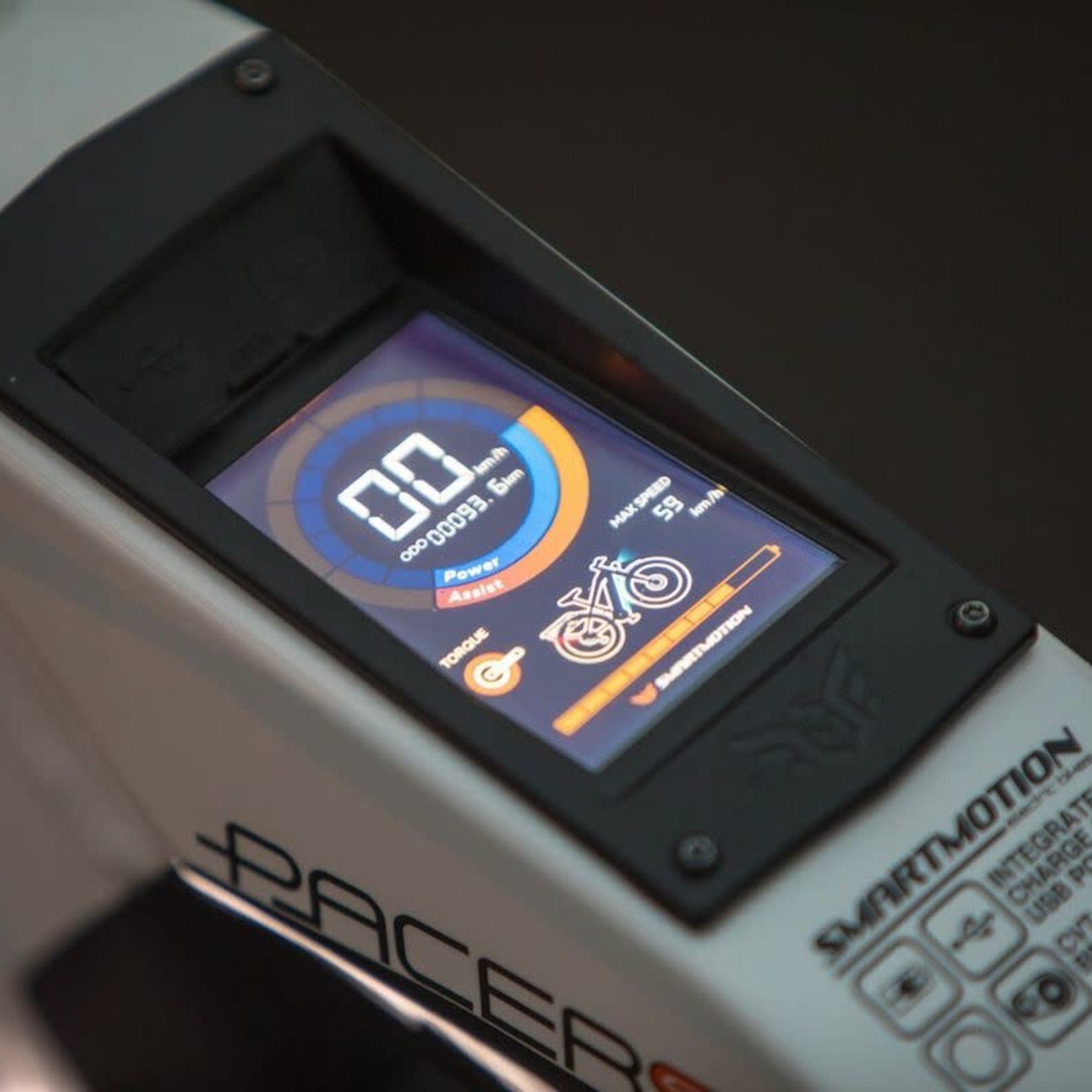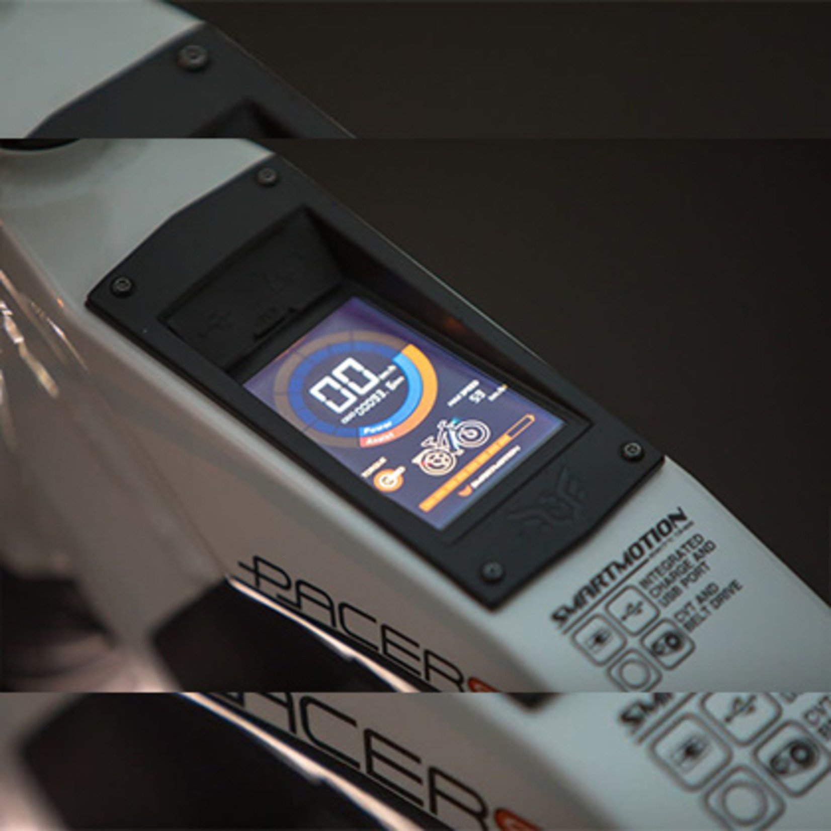 The Smartmotion Pacer GT variant has identical frame features to the original Pacer electric bike, including the same distinctive square tubing and top tube integrated colour display.